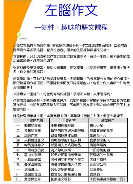 大台北地區國小作文班、數學班、專注力課程,專業教學規劃。
